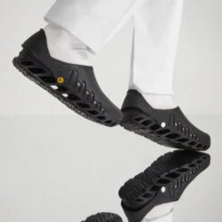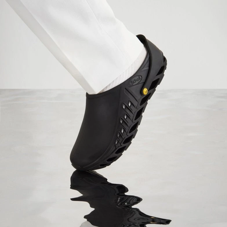 La parte superiore è liscia per prevenire l’accumulo di liquidi e sporco, facile da pulire, forata ai lati per garantire la traspirazione e opportunamente realizzata per drenare il liquido lontano da questi, mantenendo il piede asciutto.