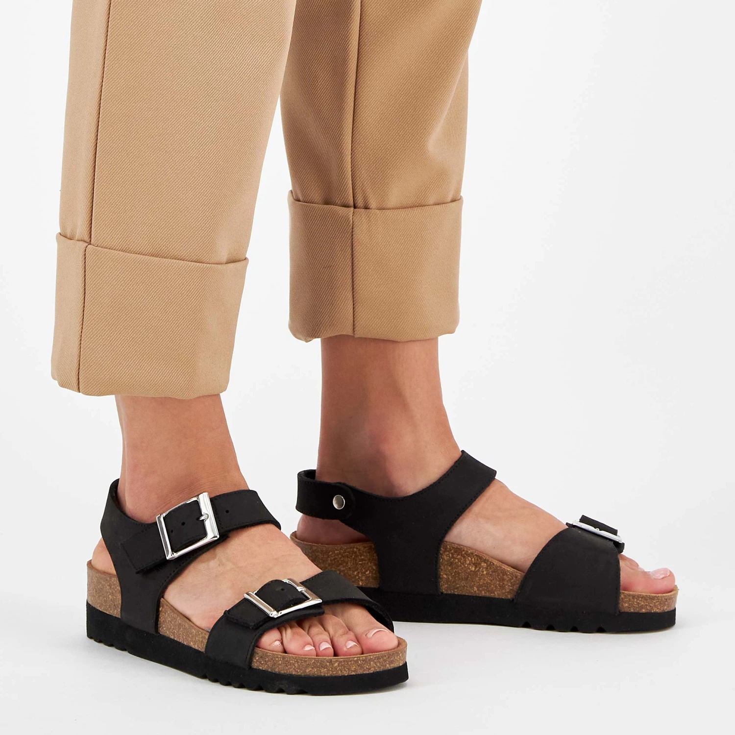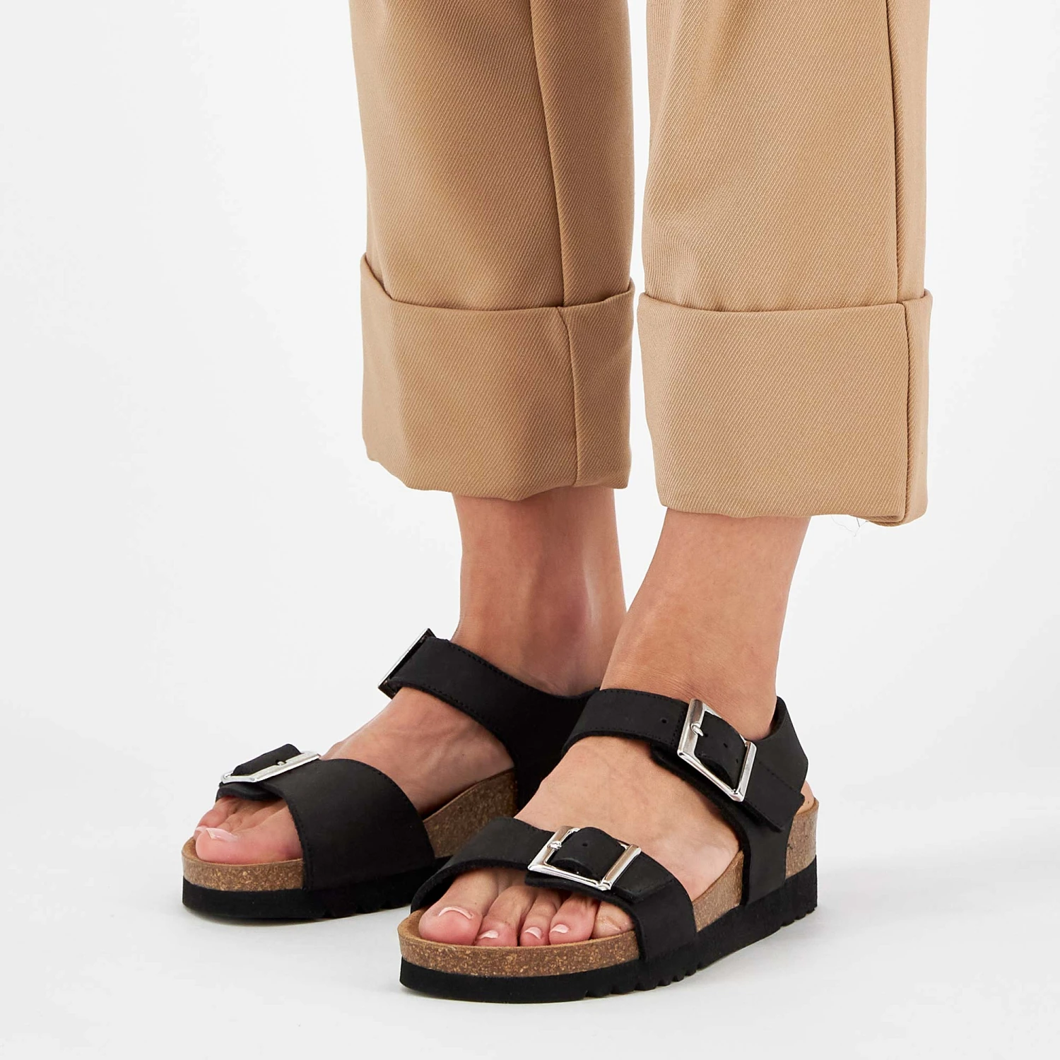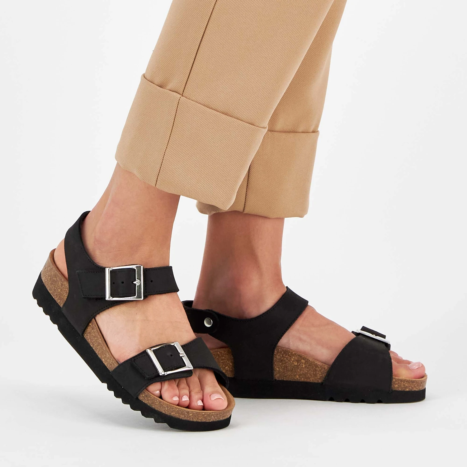 Esci con stile con questi sandali in nabuk da donna, adornati con due eleganti fibbie e dotati di un plantare BioPrint Adapta per un comfort e un supporto superiori.