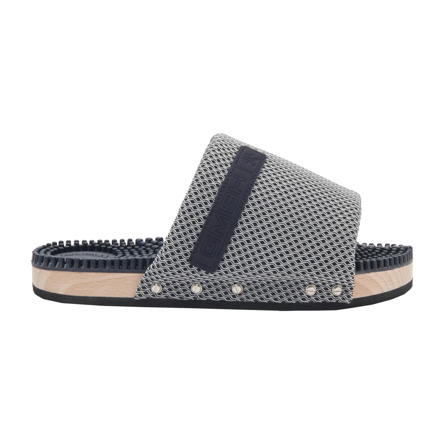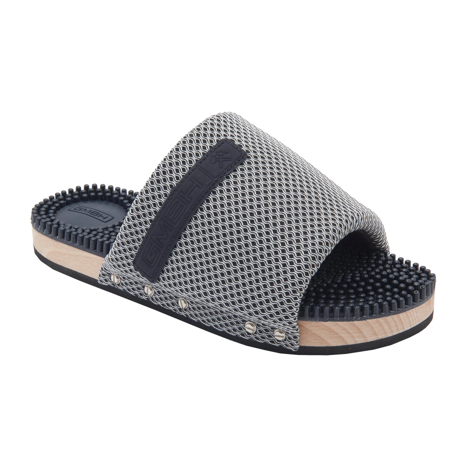 Ghazal Pescura took inspiration from one of the most iconic Scholl styles from the ’70, with a massage footbed on top of the handcraft in Italy original wooden sole. This unique detail, that brings relieve and ease to one’s feet, is now paired with a chunky and soft cushioned upper, realized in sustainable mesh textile.