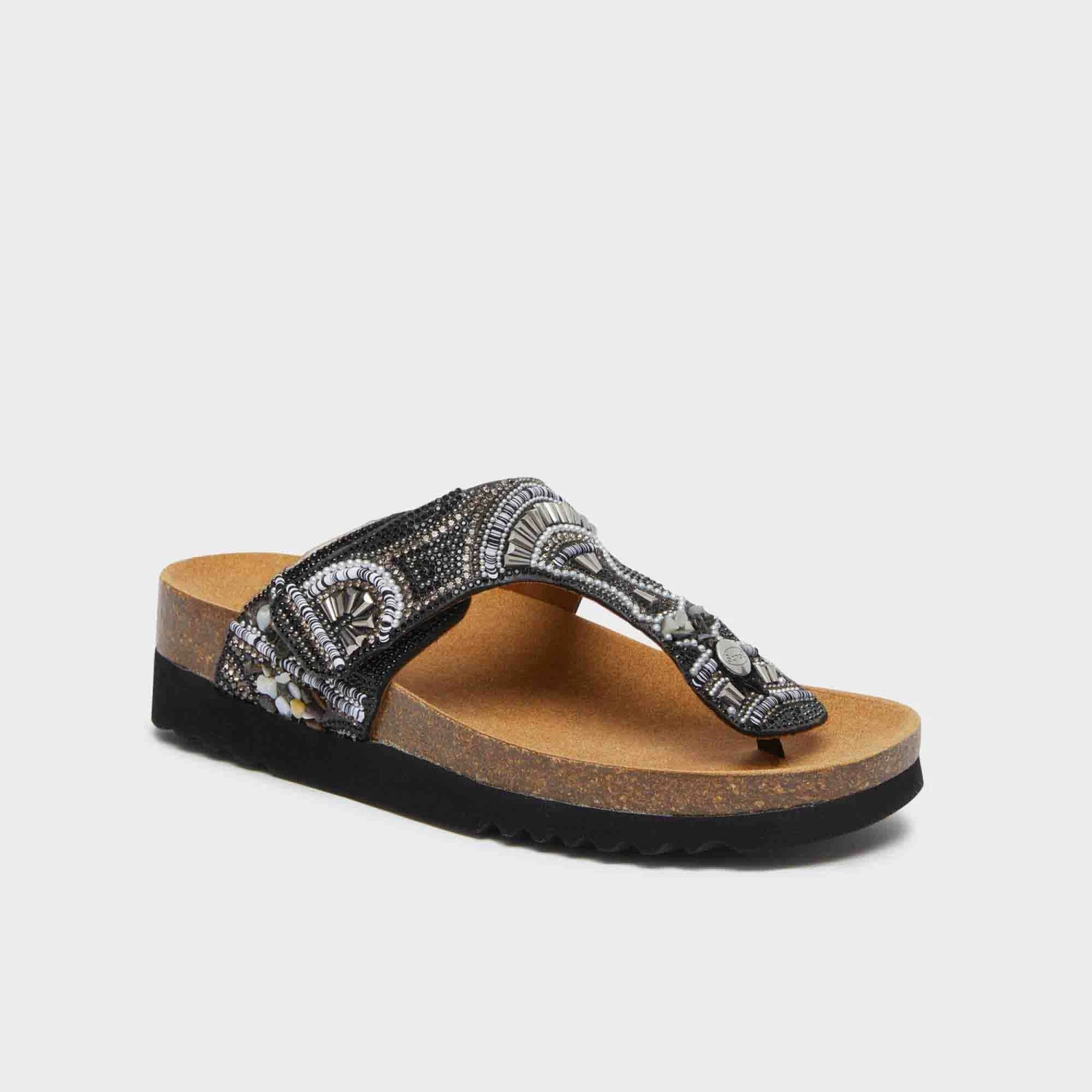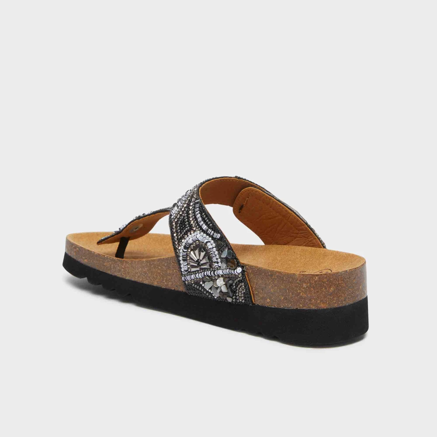 Sandalo donna elegante e confortevole, dotato di tecnologia Bioprint® che migliora la postura sostenendo l’arco plantare e favorendo un comfort prolungato. La tomaia è realizzata in microfibra decorata con perline, per un tocco raffinato e di tendenza. Il design con cinturino a T assicura una calzata comoda e pratica. Perfetto per completare i tuoi look estivi con stile e funzionalità.