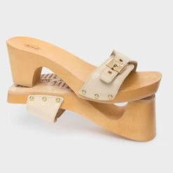 Pescura Cameron Mid è la versione più femminile della Pescura Heel. La suola in legno è stata ridisegnata, rendendo le linee più arrotondate e la tomaia più stretta.