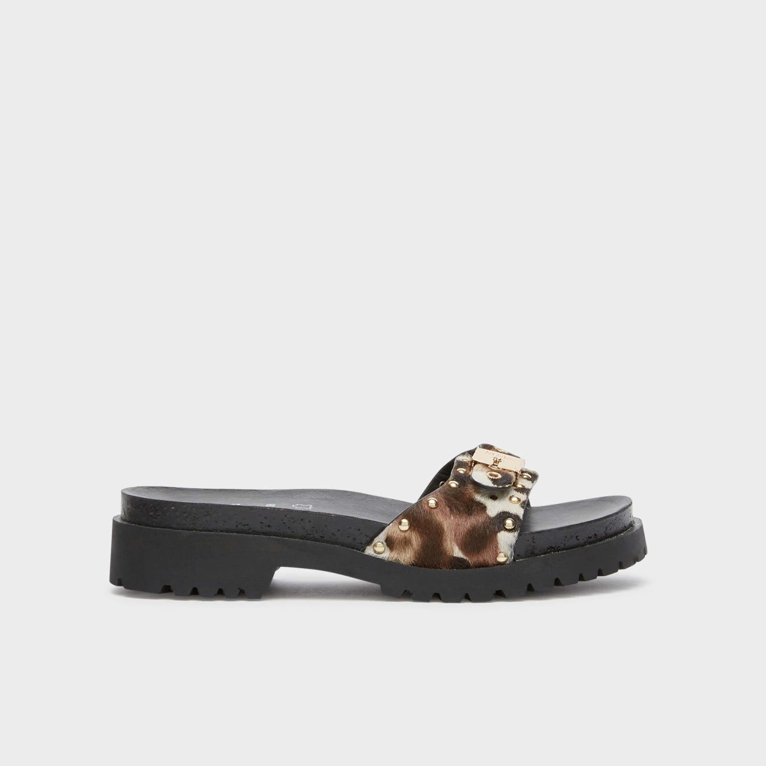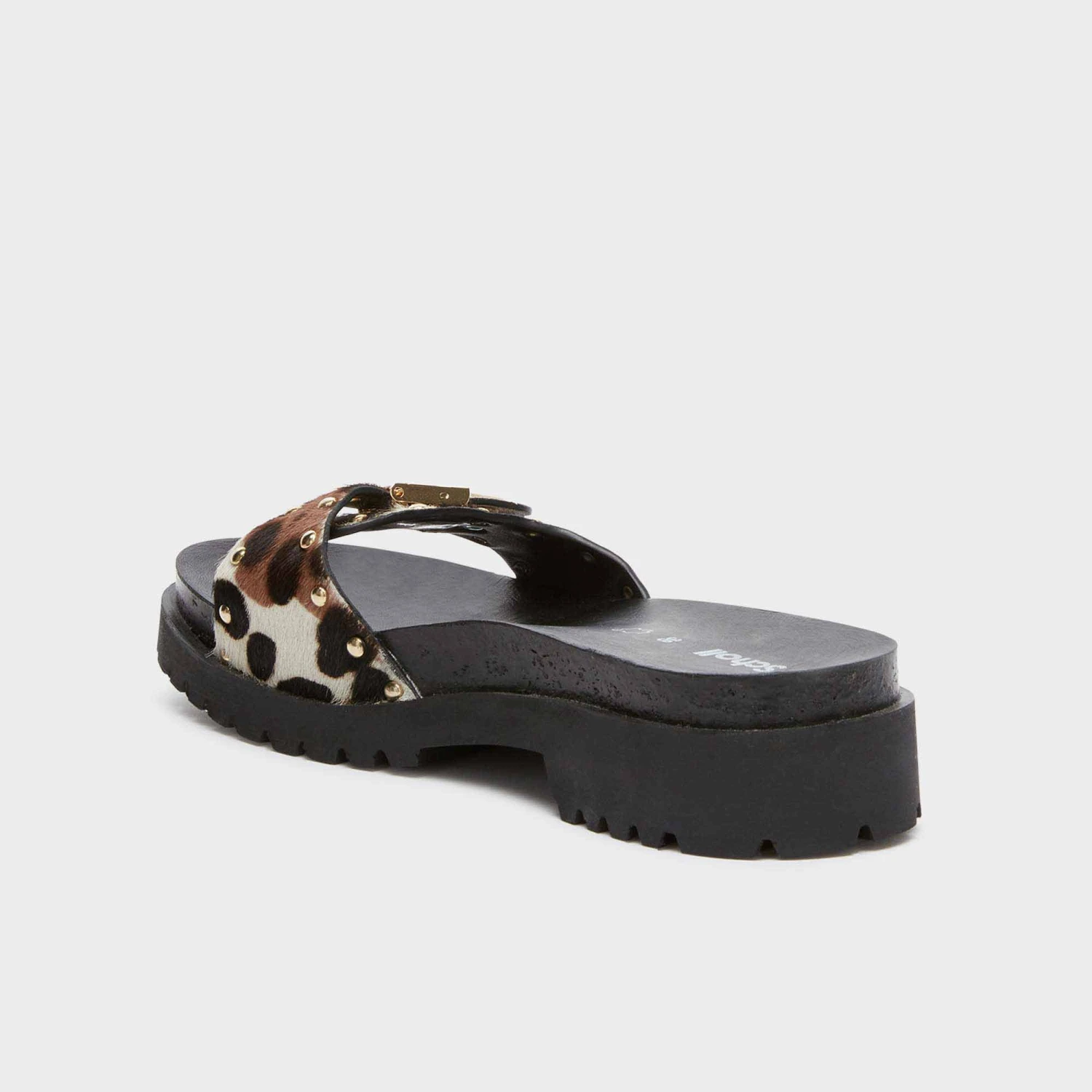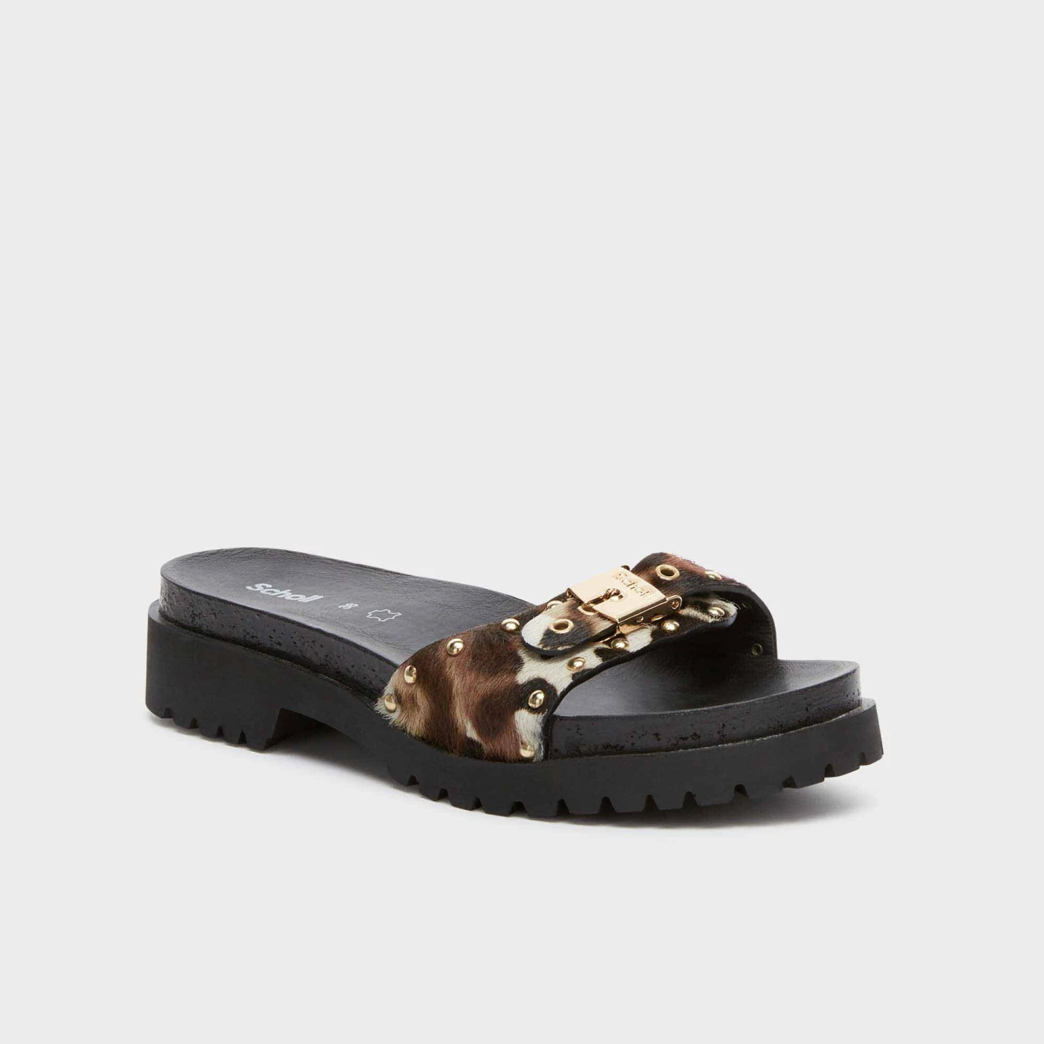 Il modello Pescura Carroarmato Cork è caratterizzato da una suola platform in sughero e gomma, che offre comfort e stabilità. La tomaia in cavallino con audace design animalier è impreziosita da borchie dorate, per un look moderno e di tendenza. Perfetto per un outfit chic e una calzata confortevole tutto il giorno.