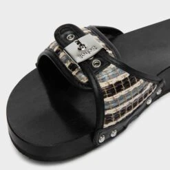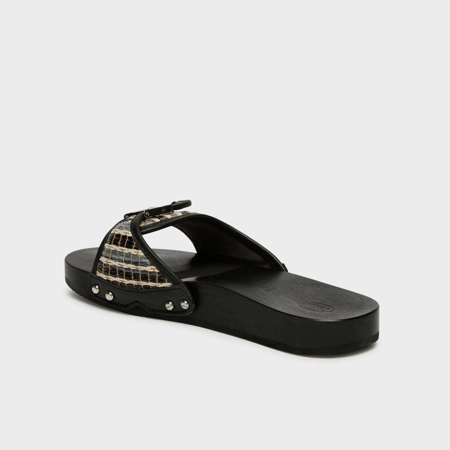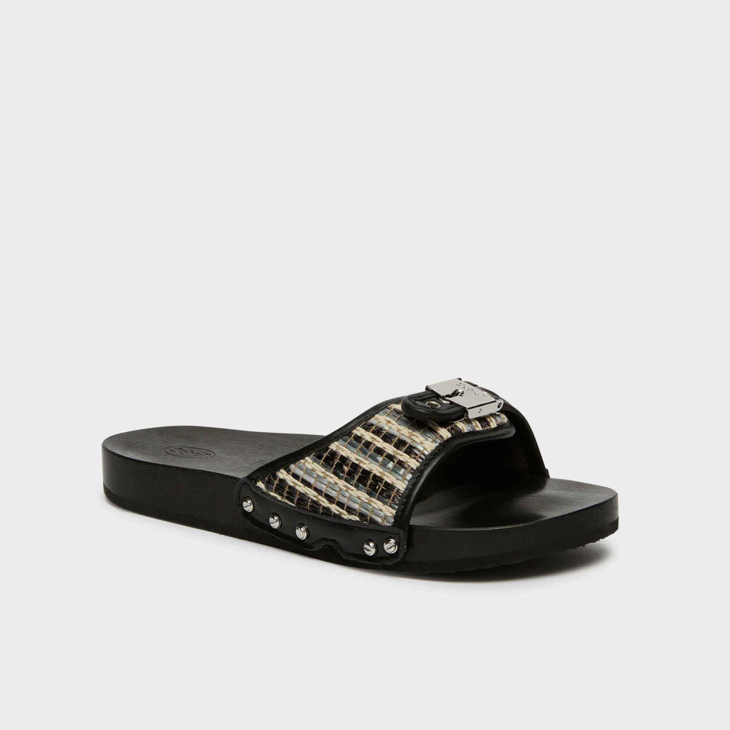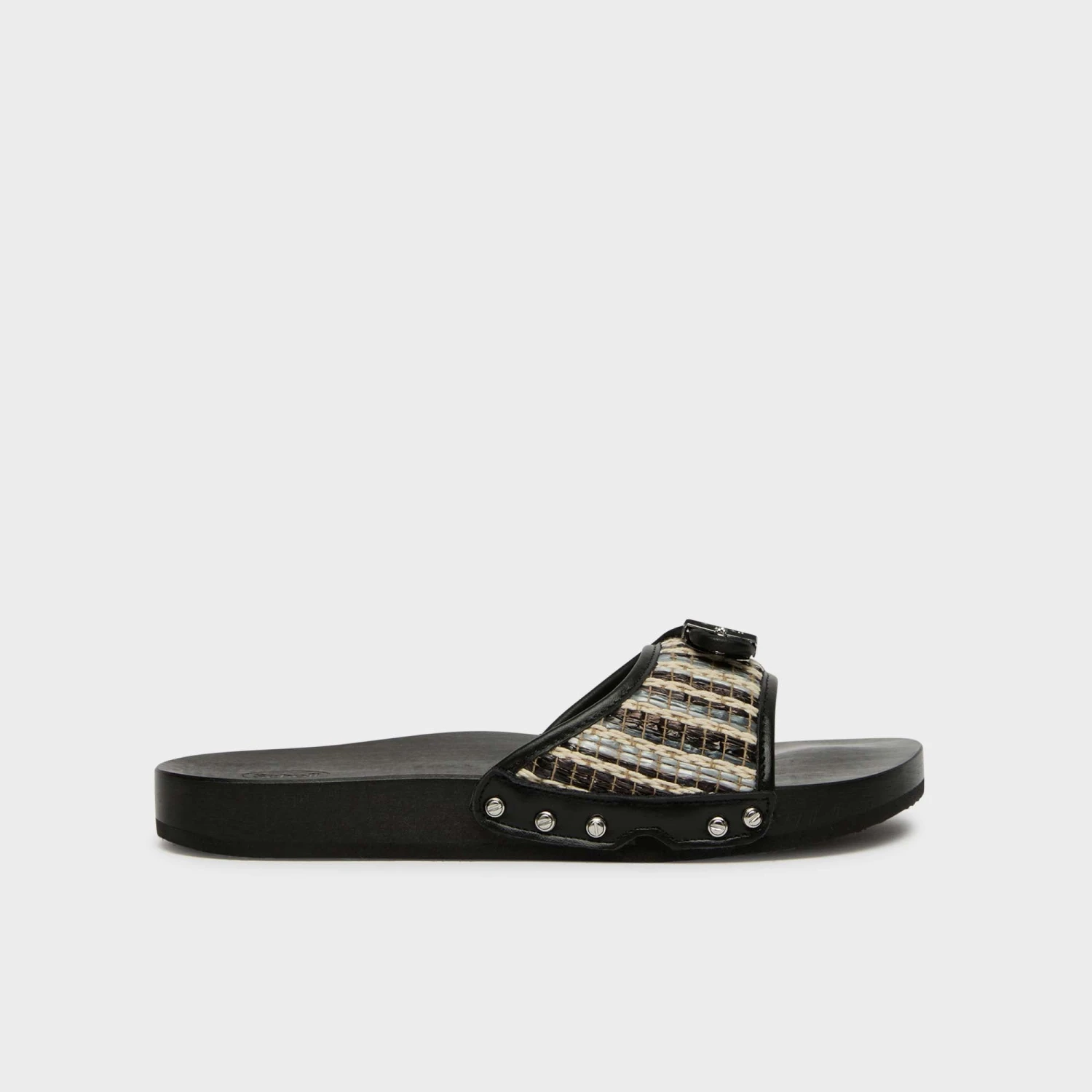 Pescura è l’iconico modello in legno di Scholl, una vera icona degli anni ’70 e un must-have per dare un tocco retrò a qualsiasi look. Progettato e realizzato interamente in Italia con materiali di alta qualità, la tomaia in rafia è completamente regolabile.