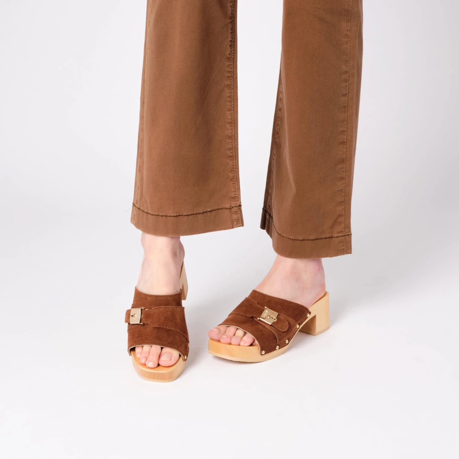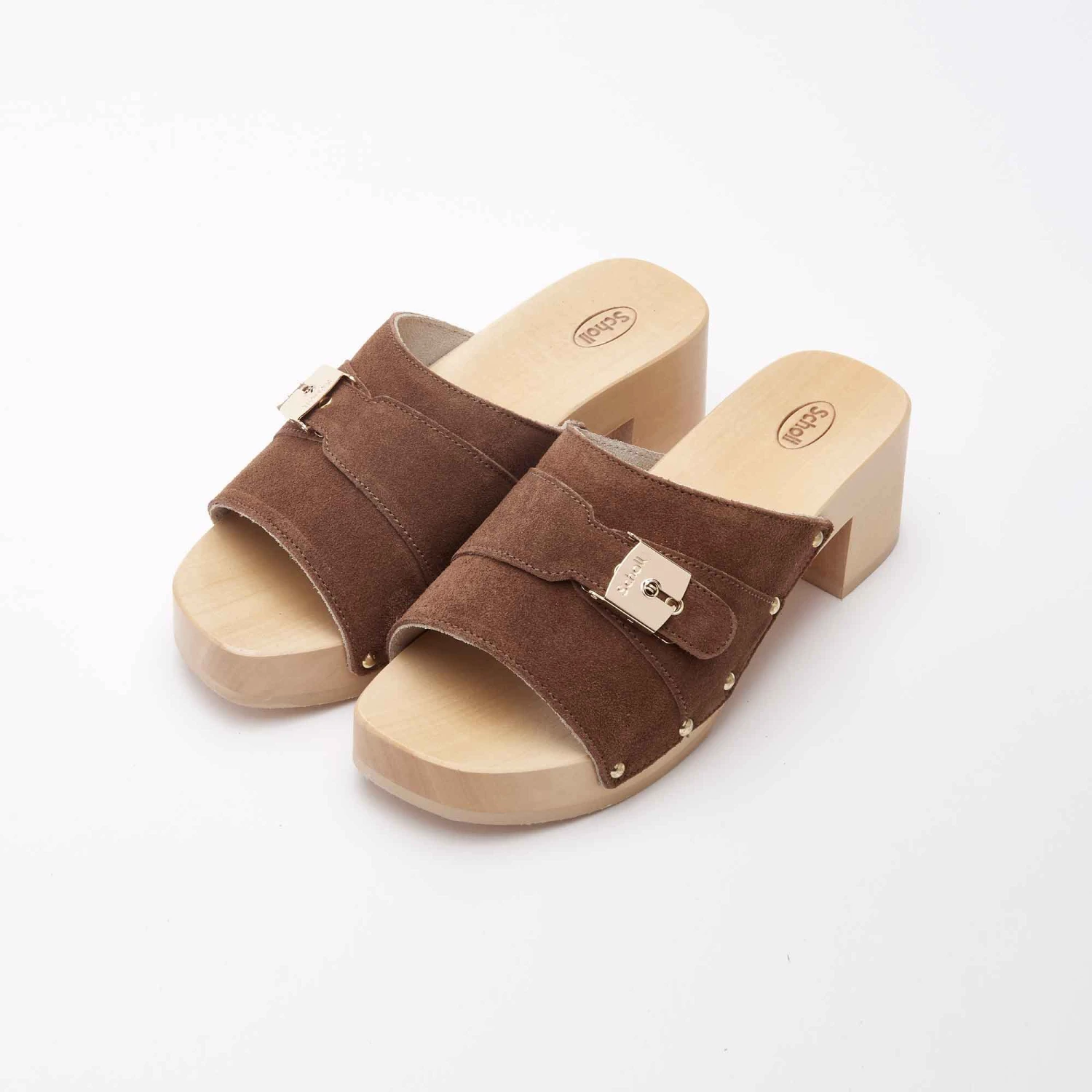 Pescura è l’originale zoccolo in legno realizzato da Scholl, vera icona degli anni ’70 e un must per dare un tocco retrò a qualsiasi outfit. È progettata e realizzata interamente in Italia con materiali di alta qualità come la base in puro legno di faggio e la tomaia in pelle completamente regolabile. Nella nostra reinterpretazione dell’originale Pescura, il tacco largo conferisce alla scarpa uno stile vintage.
