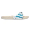 Dotato di due fasce, una sulla parte anteriore e una sulla parte centrale, il sandalo si adatta facilmente alla forma del piede, mentre il cinturino posteriore con fibbia regolabile garantisce una calzata sicura e personalizzabile. Realizzato in pelle, il sandalo offre una sensazione di morbidezza e resistenza.